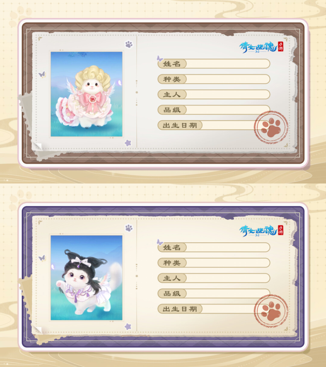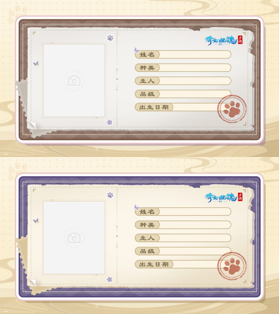 贴心的空白模板也给大家准备好啦,快来给你的灵宠定制专属“身份证”,把你们的三界羁绊变成一份温暖的纪念吧~