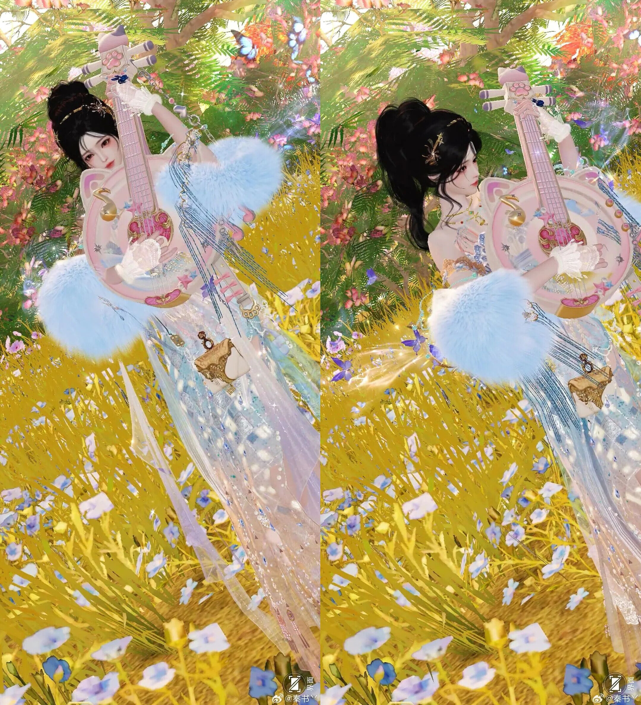 而染作樱粉色,又甜得像一口蜜糖!少侠俯身花丛间,蓬松的裙袂如初绽的芍药,手执背挂·阮狸糖,轻轻一扫,连带着蝴蝶一起在风里轻轻颤动。