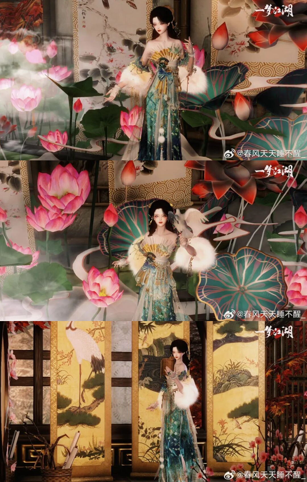 衣香鬓影过,锦纶承春秋。少侠@春风天天睡不醒_立荷塘间,白鸽敛翅栖于她掌心,不知是寻觅真荷,还是眷恋衣上绣春。