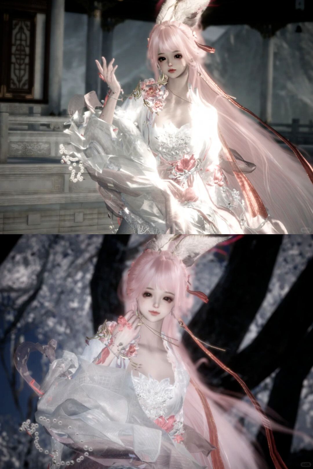 二人身侧,小鸟振翅牵起裙角白纱,衣袂流光也随这轻动泛开涟漪,这一幕,美得像从画中飞出来的仙!