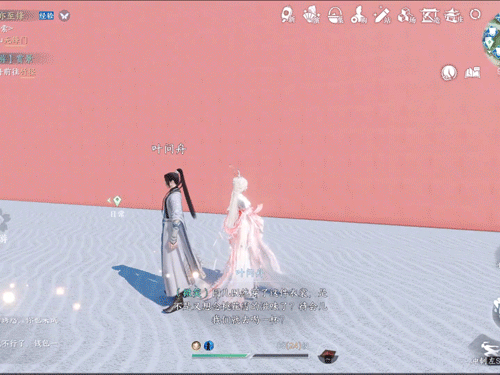 桃花雪的“小彩蛋”,大家发现了吗?穿上【桃花雪】,就能和师兄对饮一杯“桃花雪”了!