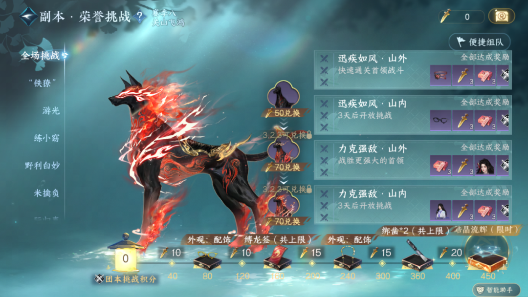 参与【关山藏锋】荣誉挑战可领超多外观:【时装·寒铃梦烬】、【发型·离幽烬】、配饰【一见倾心·红】、【配饰·泪眼汪汪·黑】……更有岩岫蕴魄、独珍材料、缚龙签、沁彩玉匣等实用好物等您来拿!