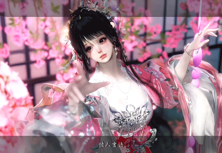 少女翩然起舞,袖间桃花纷扬,正应了那句——“人面桃花相映红”。