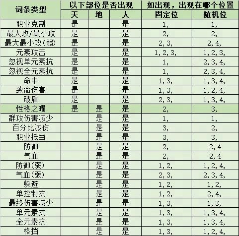 A、魂印所有词条均设定了出现的位置,详见下表(蓝、红、紫分别有1、2、3个固定词条,固定词条之后为随机词条。例如:紫魂印第4个词条为第1个随机词条):