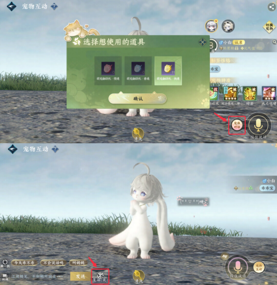 新晋萌系歌手火热登场——它就是福宝宝!版本更新后,只需与宠物对话满30次,即可解锁“复读模式”。