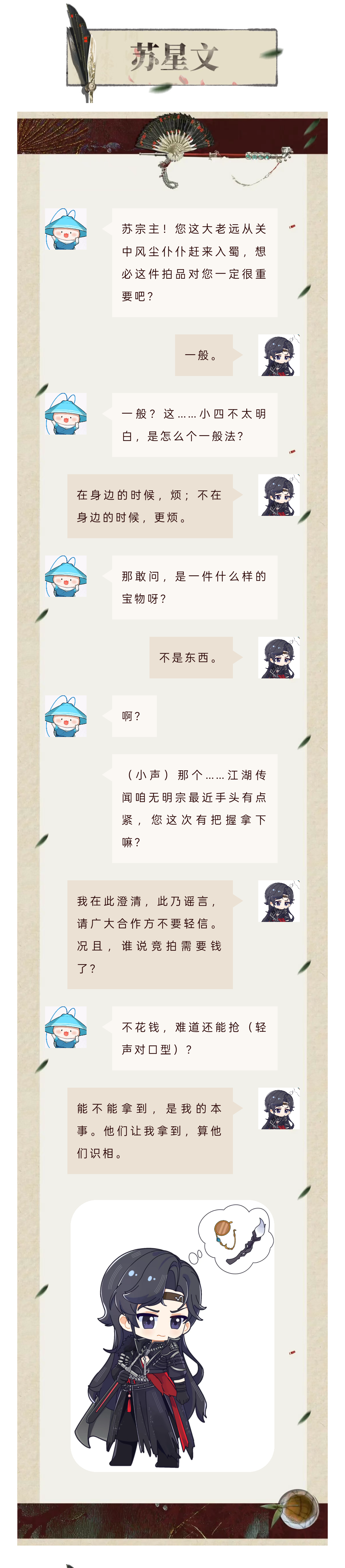 小四听到少侠们的讨论,也提前潜入了隐蔽的拍卖会现场——无天无地,场内人头攒动,竞价声此起彼伏,小四特地采访了几位志在必得的竞拍者,一起来抢先看看他们都是怎么说的吧!