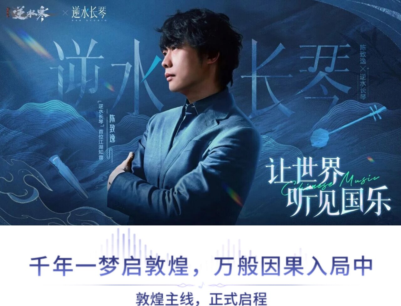 此次合作亦是陈致逸与《逆水寒》手游联合推出的独立音乐品牌【逆水长琴】重要组成部分,作品旨在用现代音乐语境焕发敦煌文化的新生命力,让世界听见国乐。