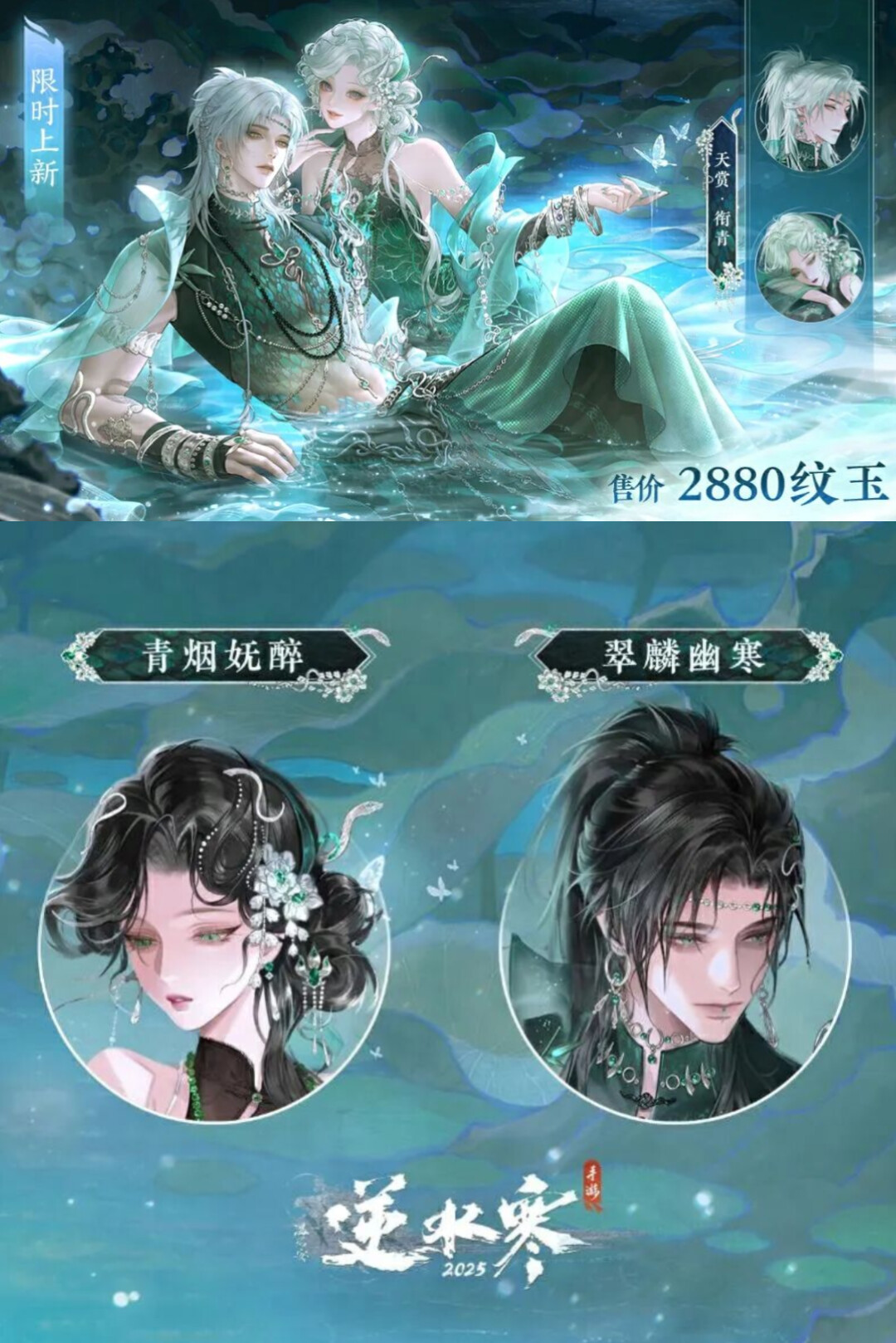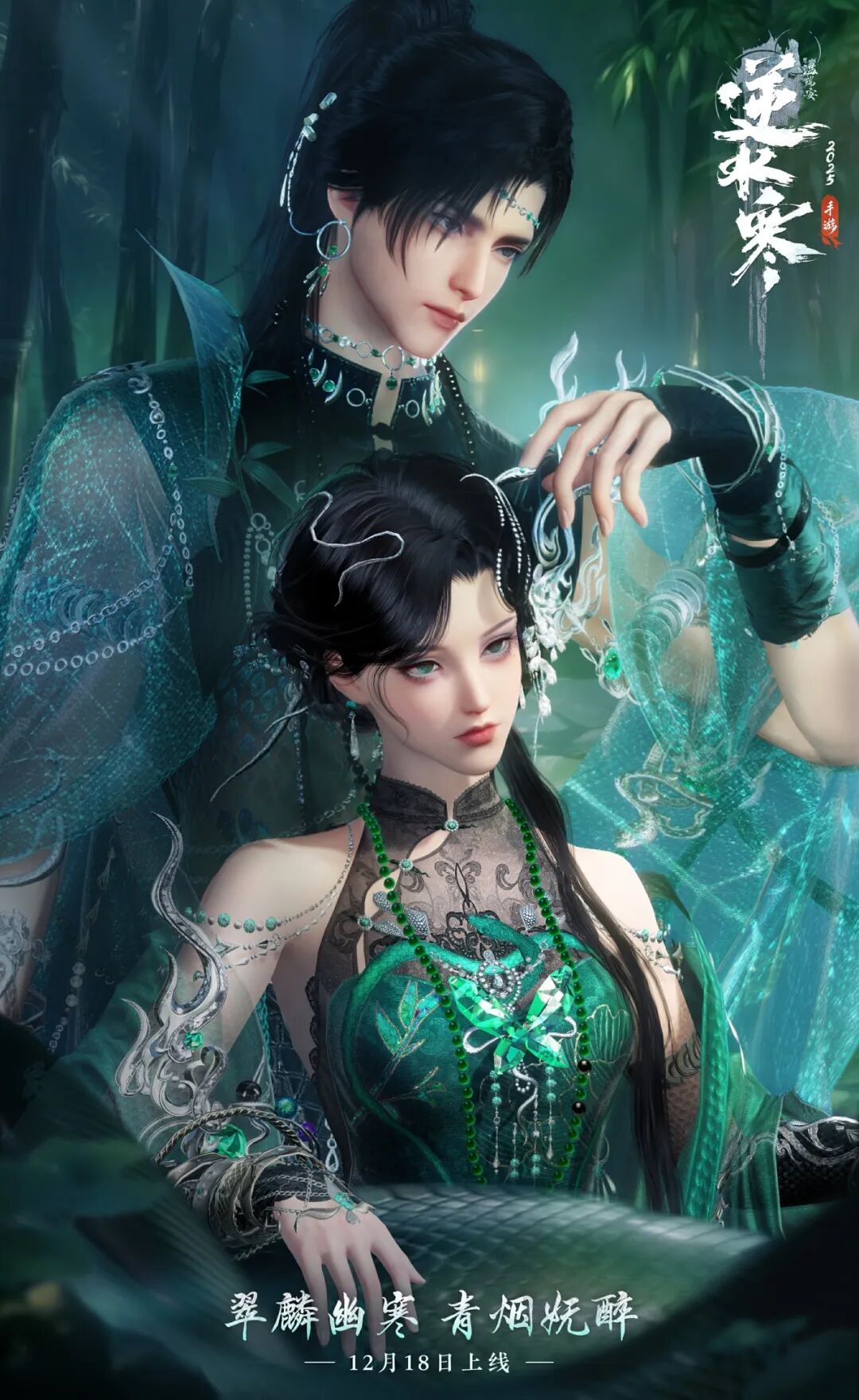 12月18日(星期四)至2026年2月6日零点,逆水寒青蛇主题时装【翠麟幽寒/青烟妩醉】将限时上架商城,直售价【2880纹玉】,可使用限定纹玉、代金券、半价券。获取时装后,各位同门还将同步解锁专属配饰、黑发头像、单人动作、双人动作以及群龙之首动画。