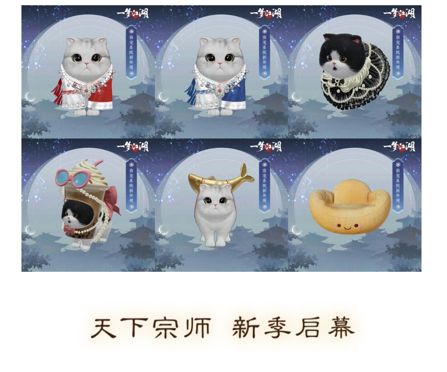 新年穿新衣,也是时候给喵主子们换上新装惊艳全场啦!2套华服、3款萌趣挂件、1个猫咪携行器,快让它成为全江湖最靓的喵,一起拍下绝世美照吧~o( =∩ω∩= )m