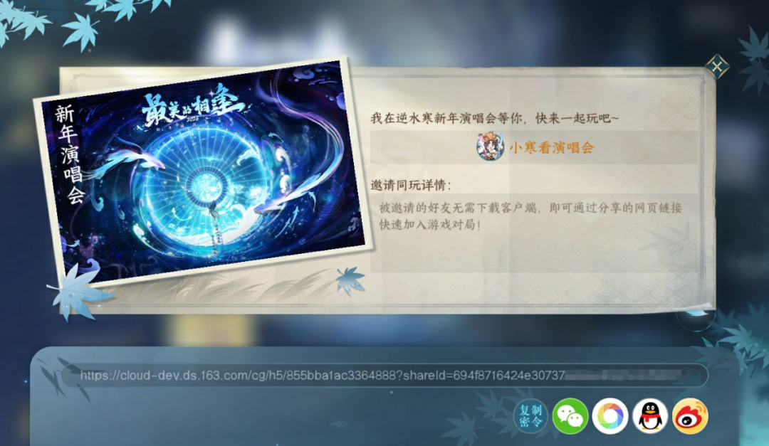 答、您可在演唱会举办期间点击“邀约”按钮生成分享链接,获取链接的好友可以无需下载客户端直接通过网页加入同一场演唱会与您一起观看。