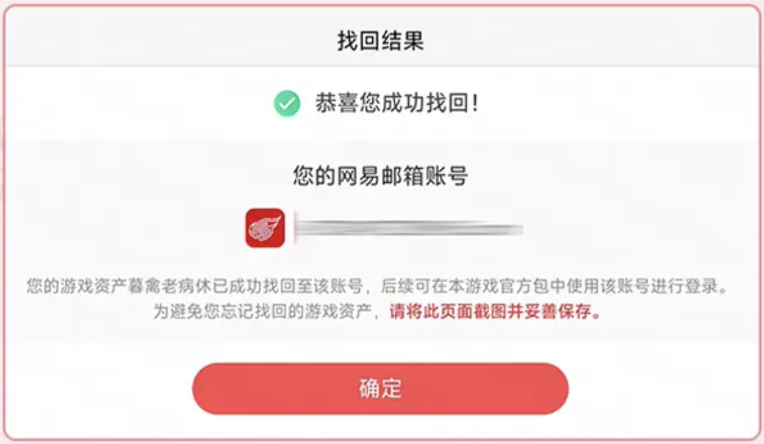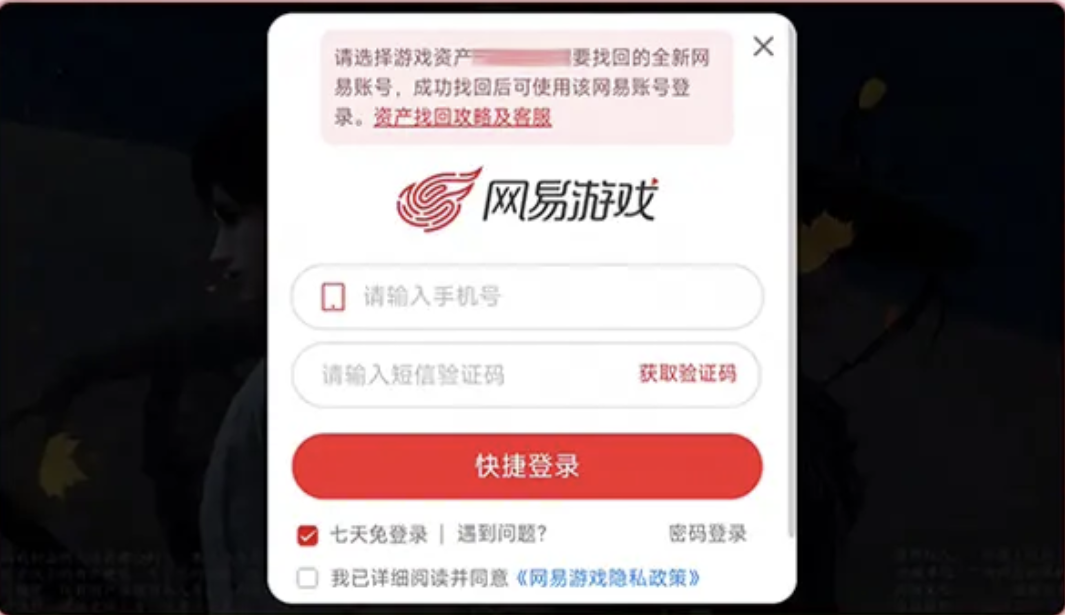 资产找回过程中,需要未登陆过《逆水寒》手游的网易通行证,用作资产承接。