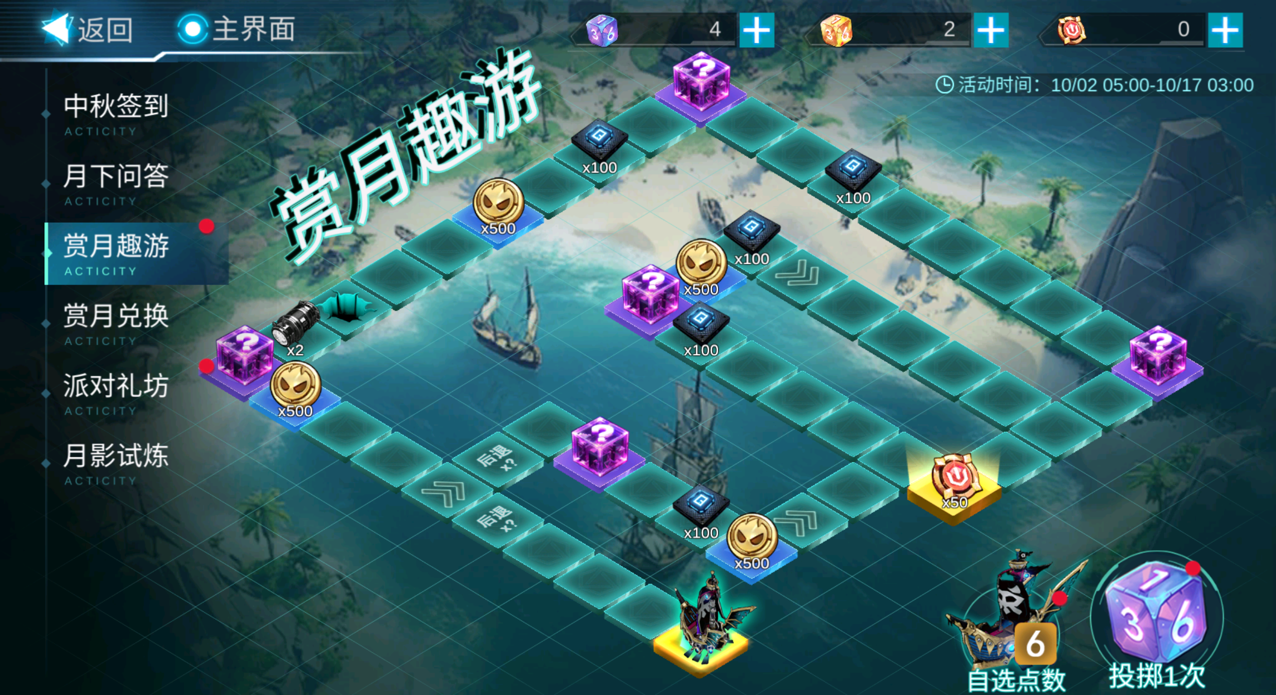 挑战者们在成功通关月影试炼的各个区域后,均可额外获得玉兔骰子和桂香骰子;钻石;金币等材料。每日会解锁一个新区域,挑战者届时便可前往该区域展开挑战。
