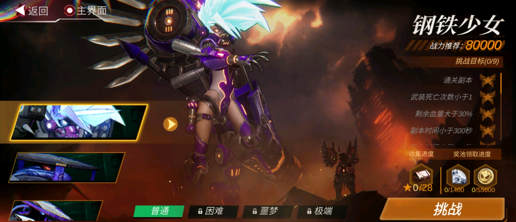 挑战机武BOSS,完成不同条件和难度,领取奖励。