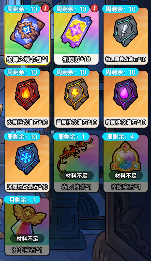 新武器赤凤神弦、淬炼宝石、升华宝石、统御之魂卡包、祈愿券等。