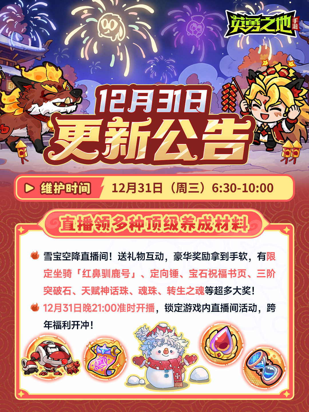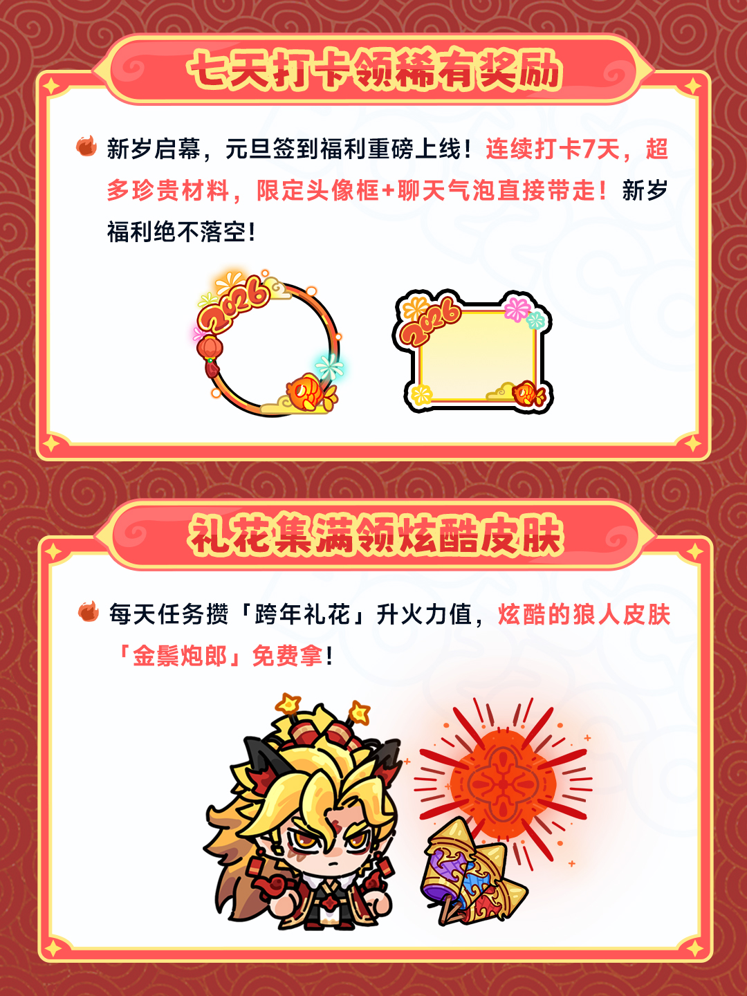 元旦版本即将重磅上线~新年豪礼已备好,福利蓄满,战斗升级!快来英勇之地共迎2026~
