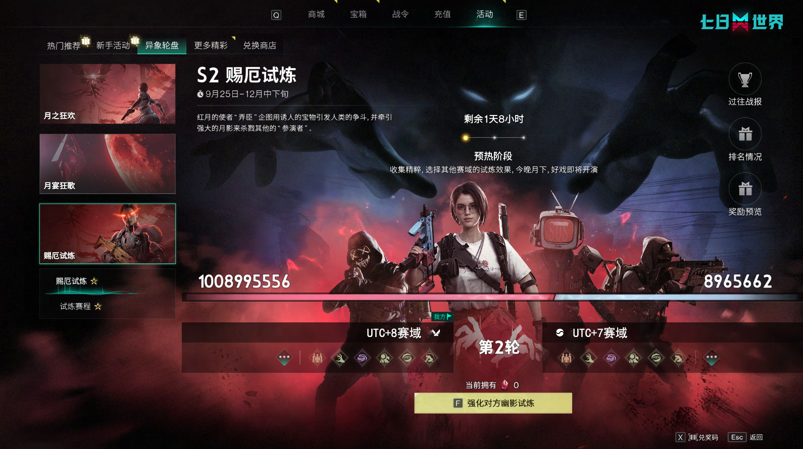 * 月影之主的强度较高,为方便超越者们互助参与,赛域将按照时区(大区)进行划分。您可以在活动界面查看自己所属的赛域。