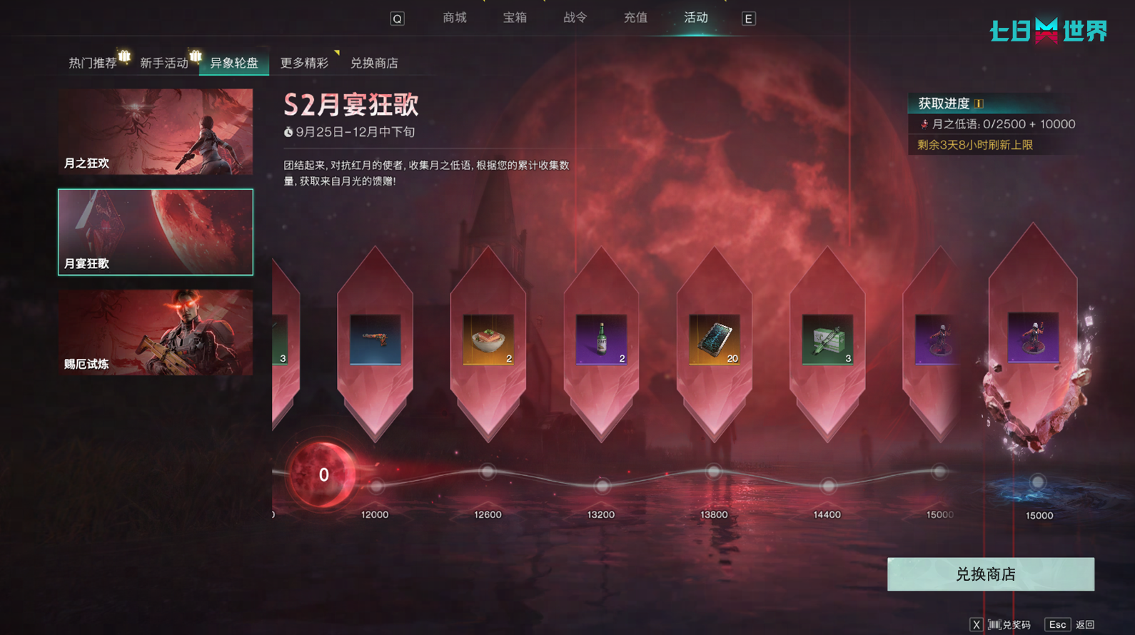 超越者可以使用月之低语前往商店兑换之前异象轮盘的奖励。