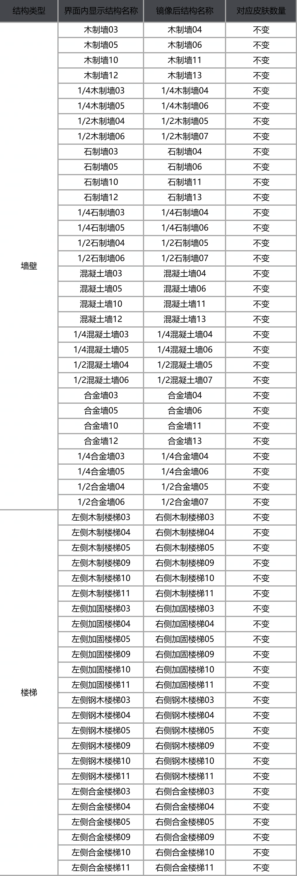 1.在建造界面中,部分结构板材拥有镜像对称结构,更新后将只显示一个,系统会显示镜像角标标记该类结构。