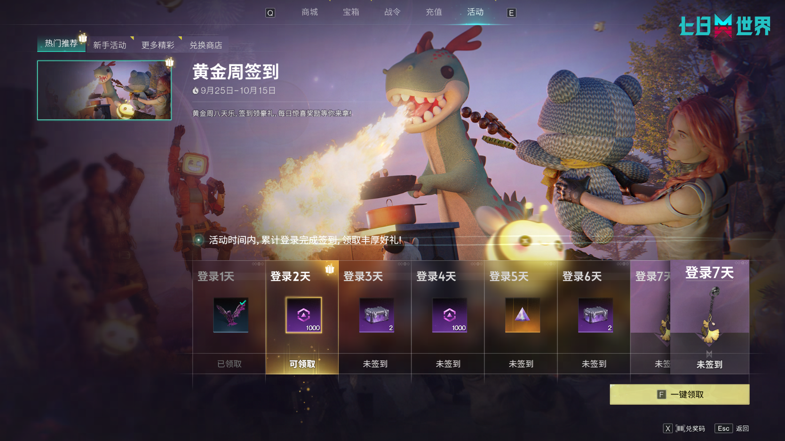 活动时间:服务器时间9月25日-10月15日