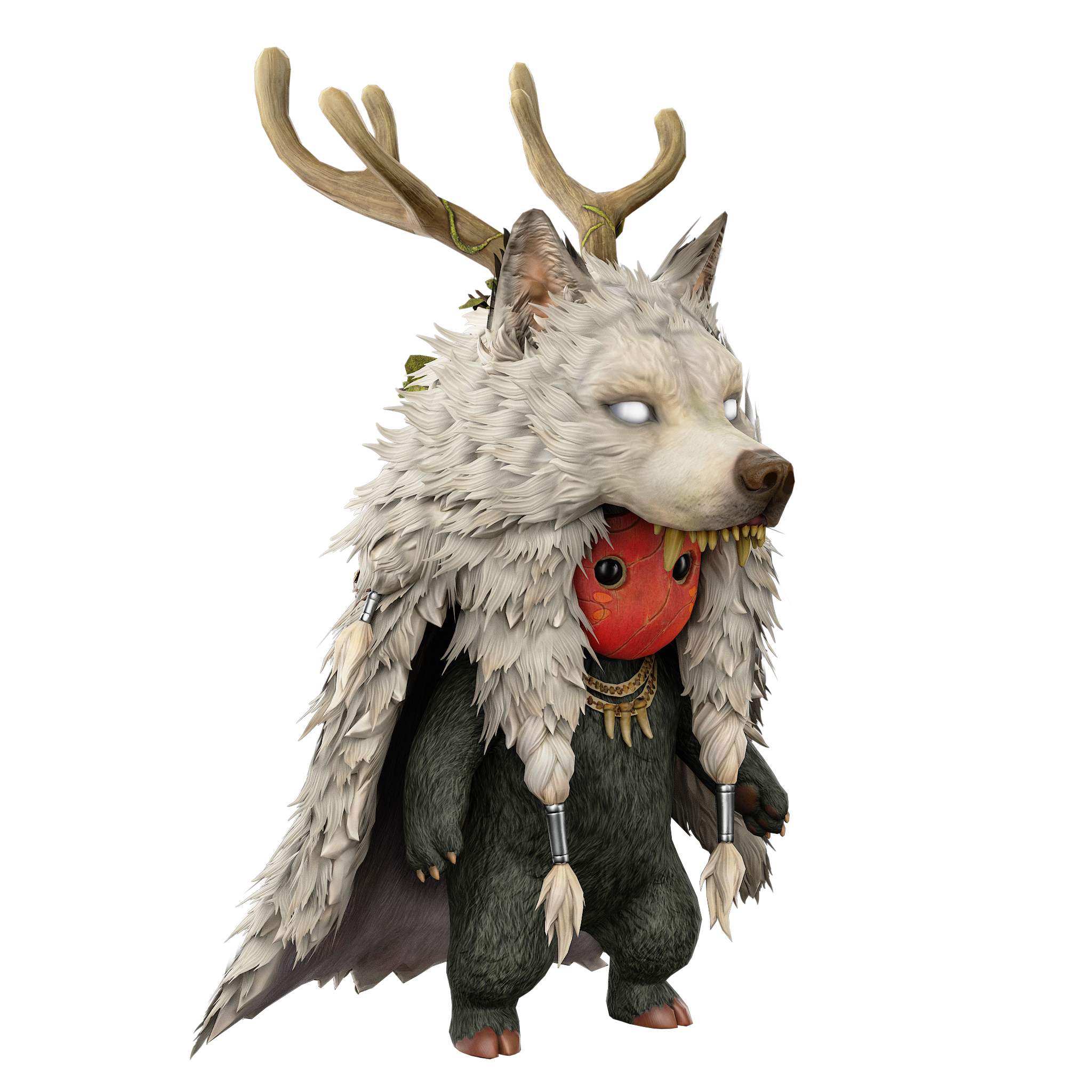 异常物O-056为一椭圆形红色云杉木面具与附有白色皮毛的狼头骨的组合。面具上雕刻有简单的眼孔,狼头骨的矢状嵴两侧生有一对骨质角。其表面温度维持在37℃-39℃。