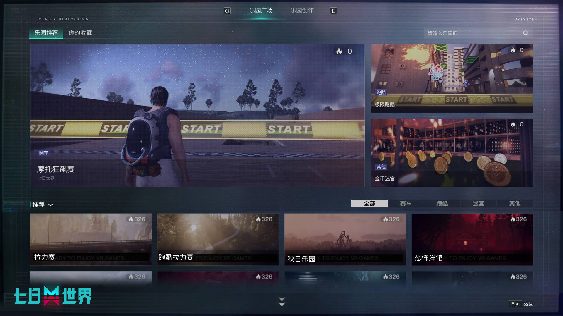 在环岛乐园的线上共研测试版中,超越者可以创建以下四个类型的玩法: