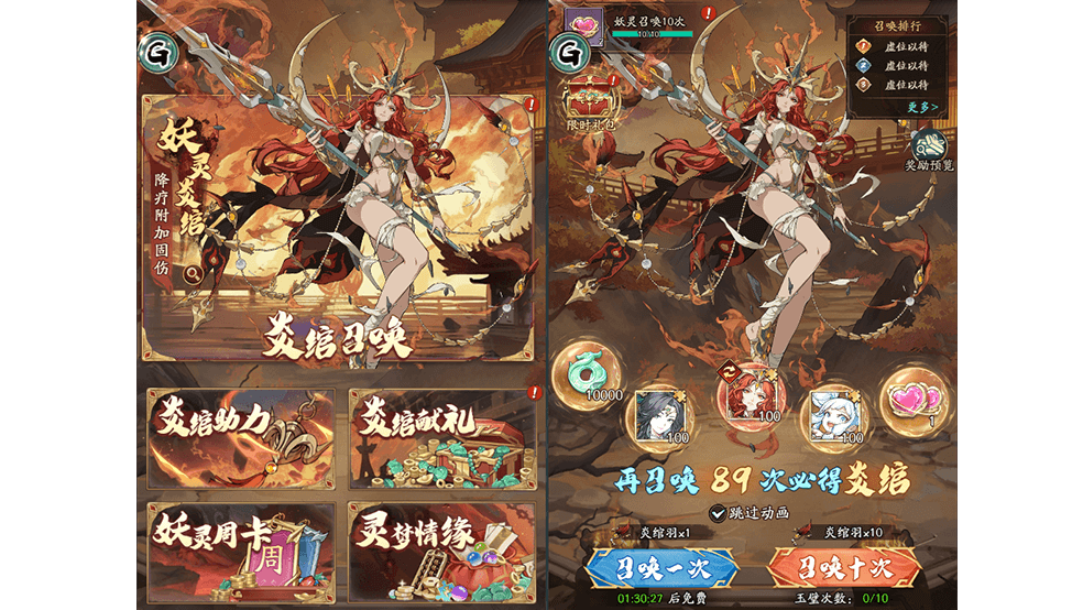 △活动期间,玩家可使用“炎绾羽”参与召唤,有机会获得全新妖灵【炎绾】!