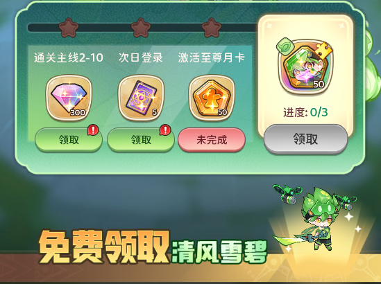 ④缔结契约:完成任务免费获得1个神话英雄【清风雪碧】