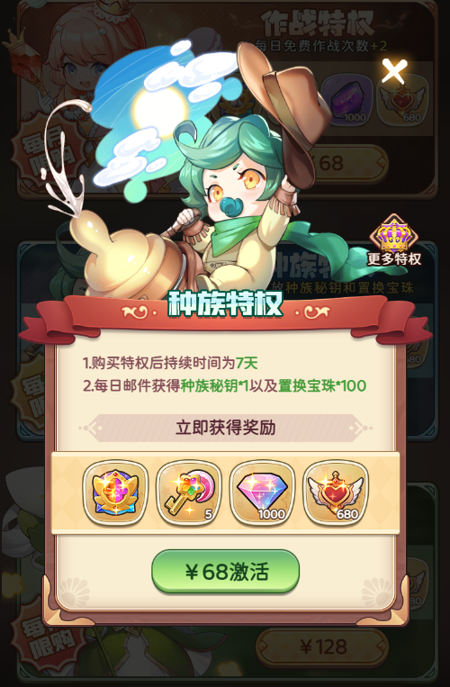 2. 作战特权(¥68)——养成加速器- 每日额外快速作战:经验、资源获取效率翻倍