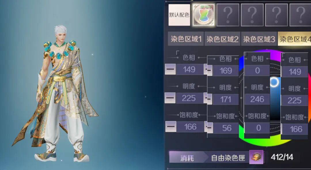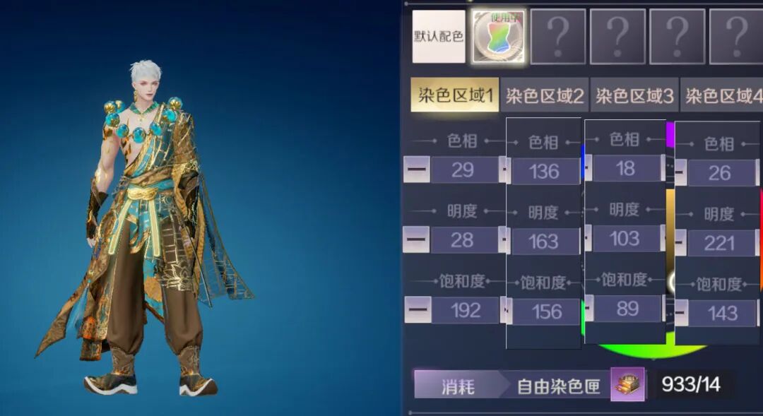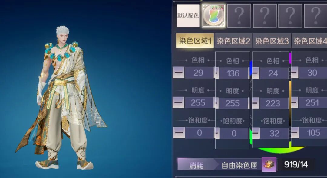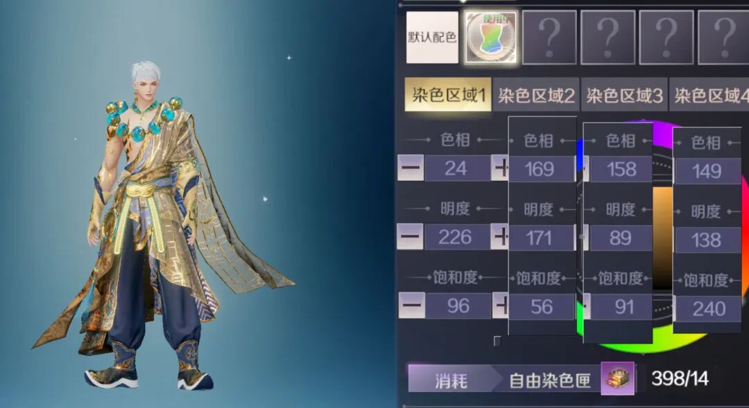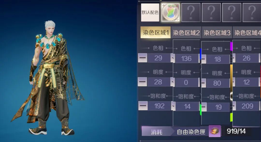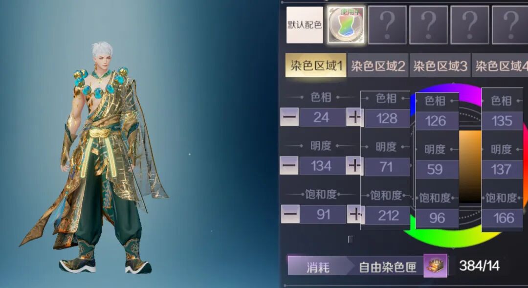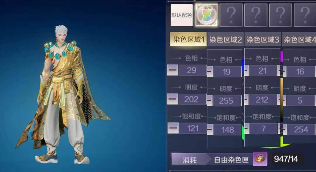 男款发型设计别出心裁,一头利落的白色短发,给人以冷冽、神秘之感。上身袒露,健壮的身形展露无遗,金色的纹身如灵蛇般蜿蜒于肌肤之上,增添了几分野性与力量感。脖颈间佩戴着精致的项链,搭配肩部那串由蓝绿宝珠串成的饰品,宝珠圆润且色泽温润,与金色元素相互映衬,奢华中不失灵动。