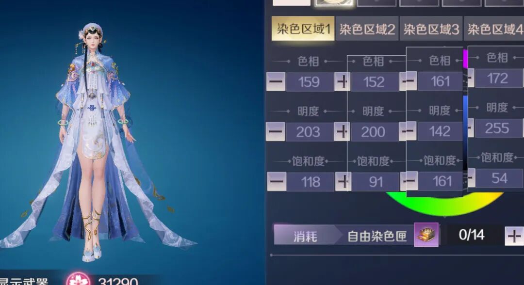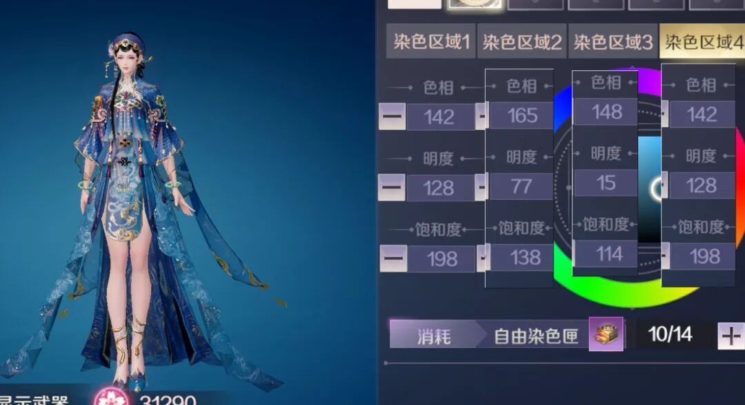 女款时装尽显柔美婉约与典雅高贵。头戴一顶蓝色为主色调的头饰,上面点缀着红色宝石与精致的配饰,犹如灵蛇身上的璀璨明珠,华丽夺目。古典长发造型,发间穿插着珠翠,增添温婉气质。身着一袭蓝色的长裙,服饰上绣有精美的花纹,似水波,又似灵蛇的纹理,灵动飘逸。宽大的衣袖采用轻薄的纱质面料,随风轻摆,仿若灵蛇舞动。手腕上的玉镯晶莹剔透,与整体服饰相得益彰,尽显温婉与柔美。