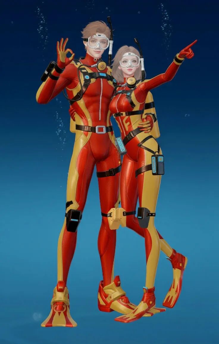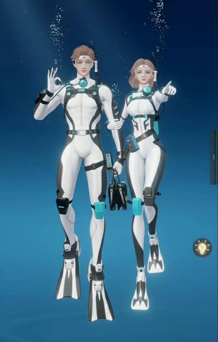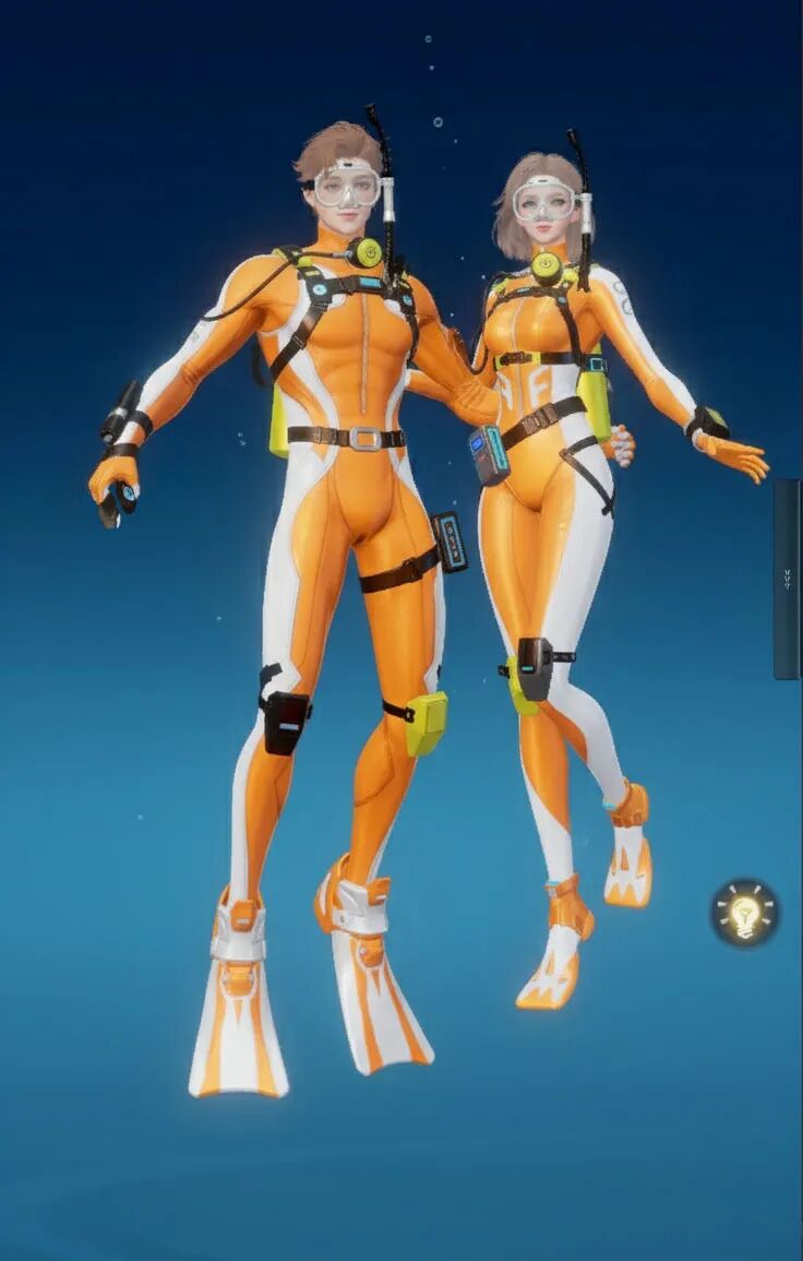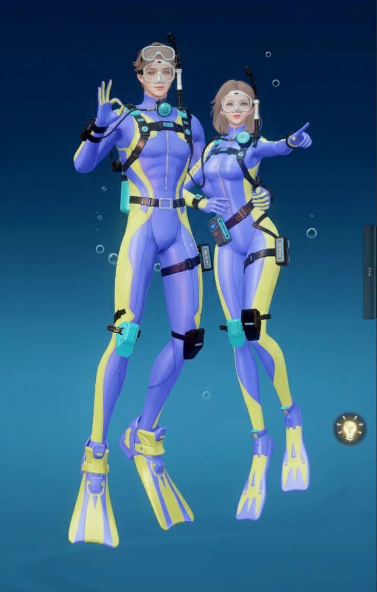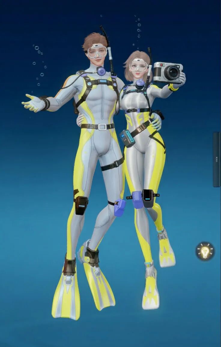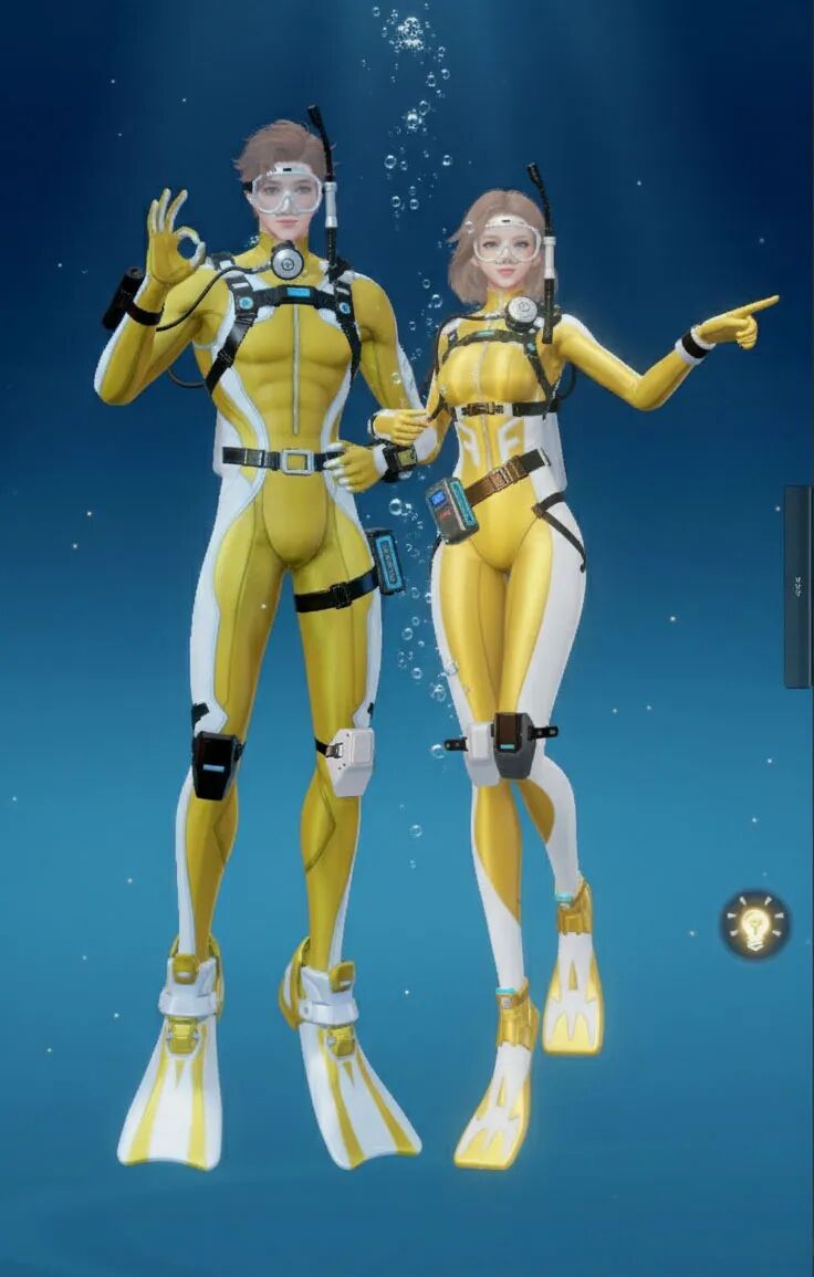 【海底两万里】主打“潜水”主题,整体采用黑黄配色,视觉上极具冲击力。紧身的款式贴合身形,能展现出角色的线条感!当然啦,装备方面可是十分专业的哟,配有潜水镜、呼吸管等,还有各种实用的潜水装置细节,仿佛能真正畅游海底!既凸显出探险的酷感,又充满了对神秘海洋探索的活力与激情。