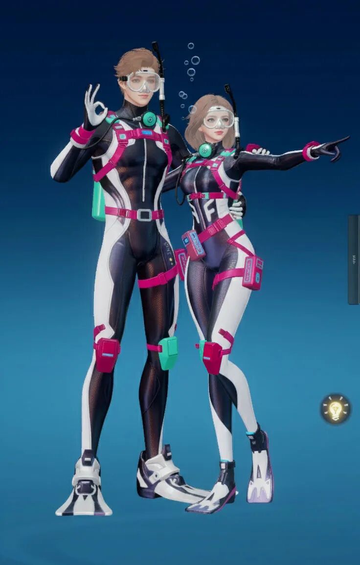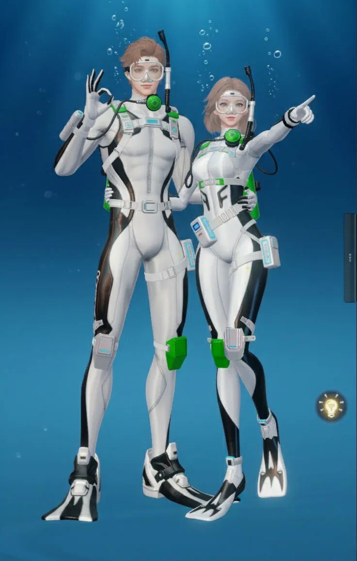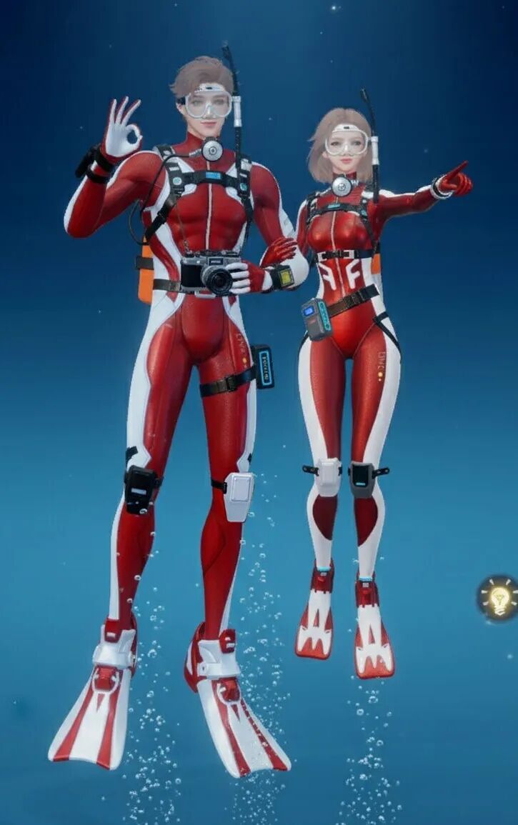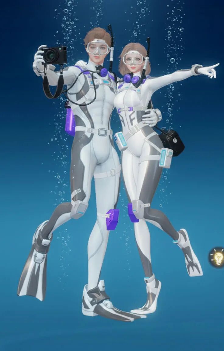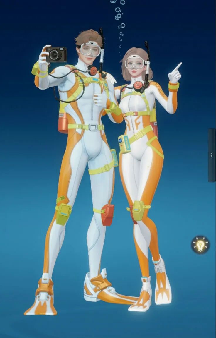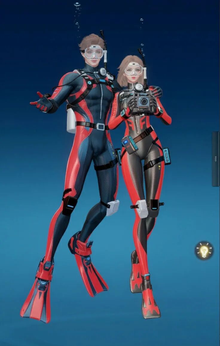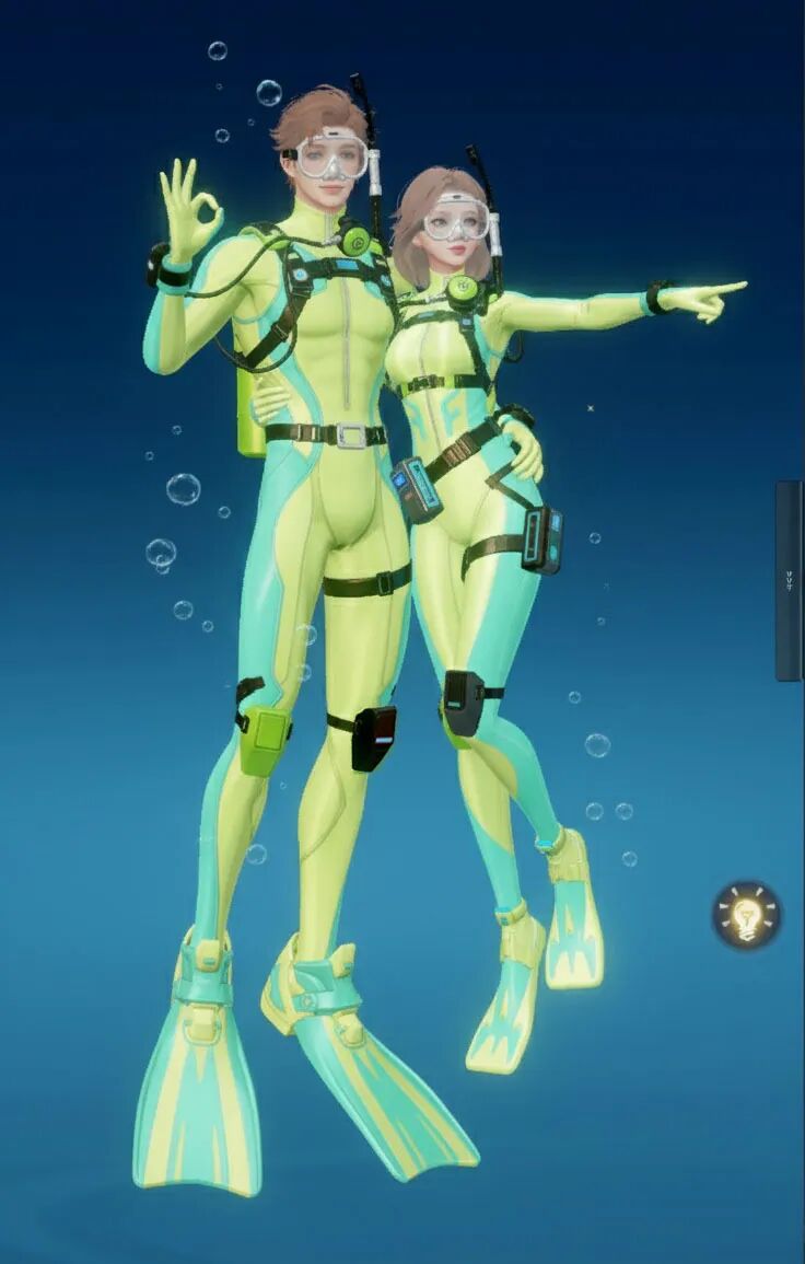 【海底两万里】主打“潜水”主题,整体采用黑黄配色,视觉上极具冲击力。紧身的款式贴合身形,能展现出角色的线条感!当然啦,装备方面可是十分专业的哟,配有潜水镜、呼吸管等,还有各种实用的潜水装置细节,仿佛能真正畅游海底!既凸显出探险的酷感,又充满了对神秘海洋探索的活力与激情。