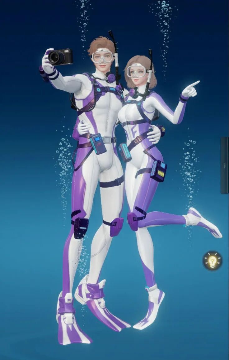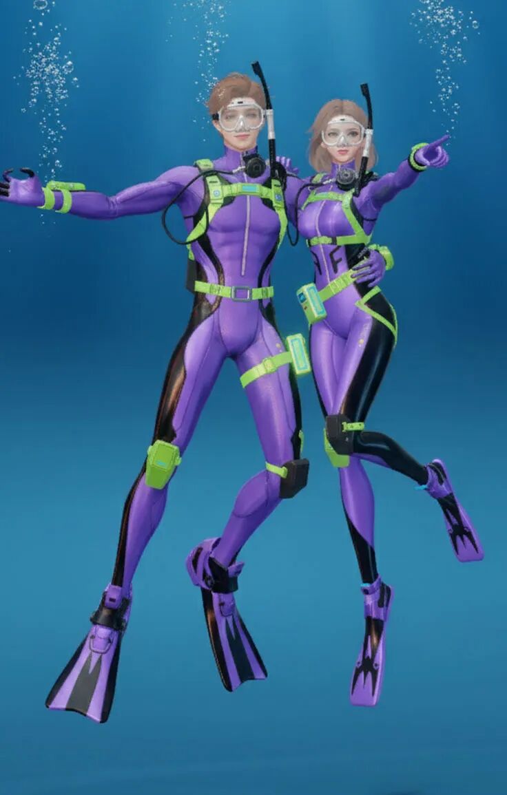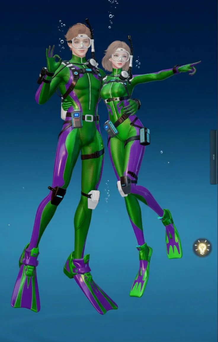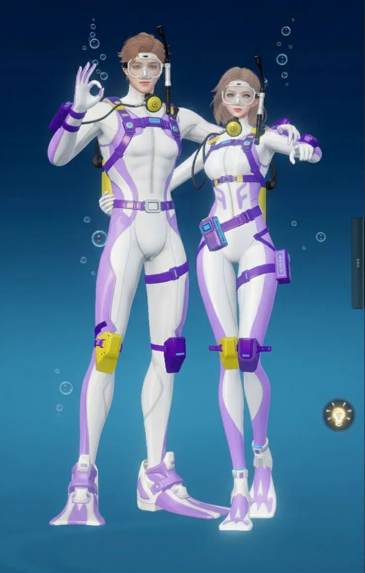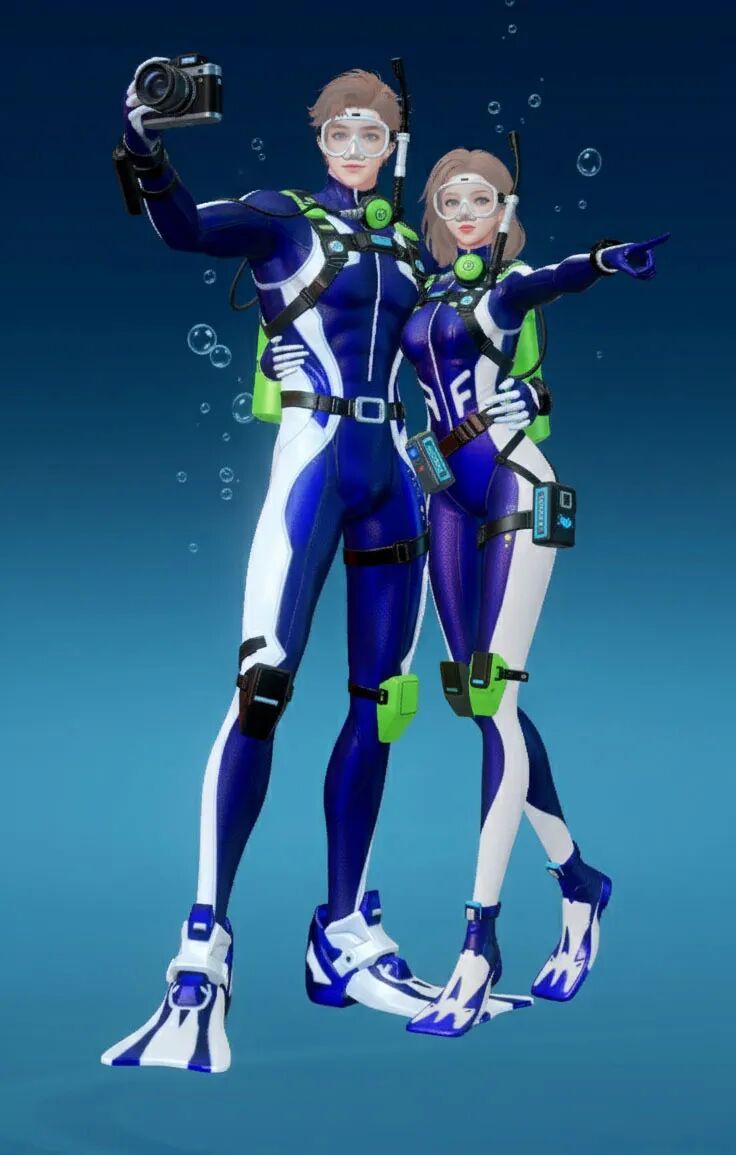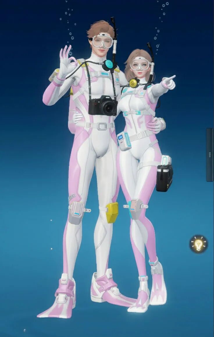 【海底两万里】主打“潜水”主题,整体采用黑黄配色,视觉上极具冲击力。紧身的款式贴合身形,能展现出角色的线条感!当然啦,装备方面可是十分专业的哟,配有潜水镜、呼吸管等,还有各种实用的潜水装置细节,仿佛能真正畅游海底!既凸显出探险的酷感,又充满了对神秘海洋探索的活力与激情。