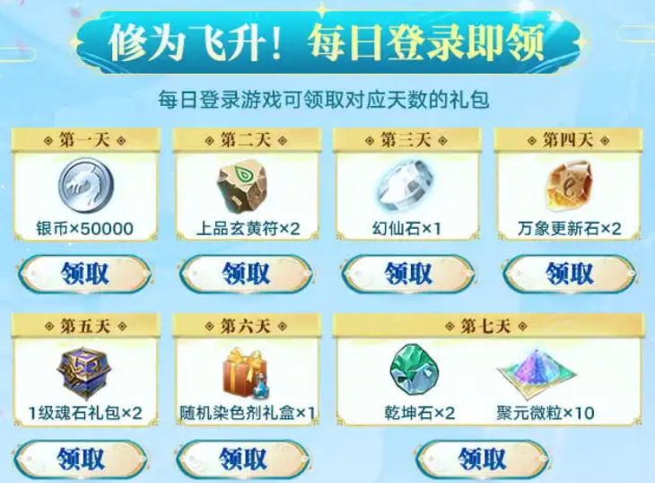 每日登录游戏,还可以领取游戏道具,助力修为飞升,那都不是梦!