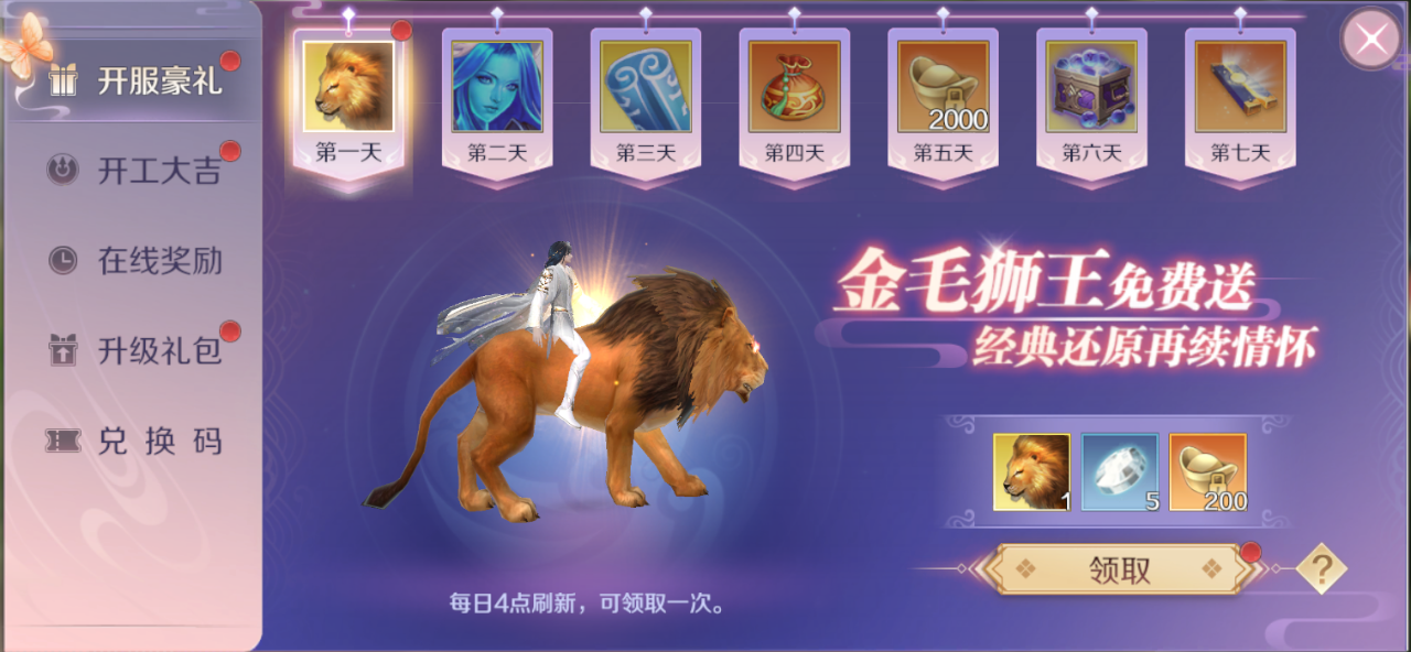 ●第1天:直接拿下霸气狮子坐骑,萌新也有排面!