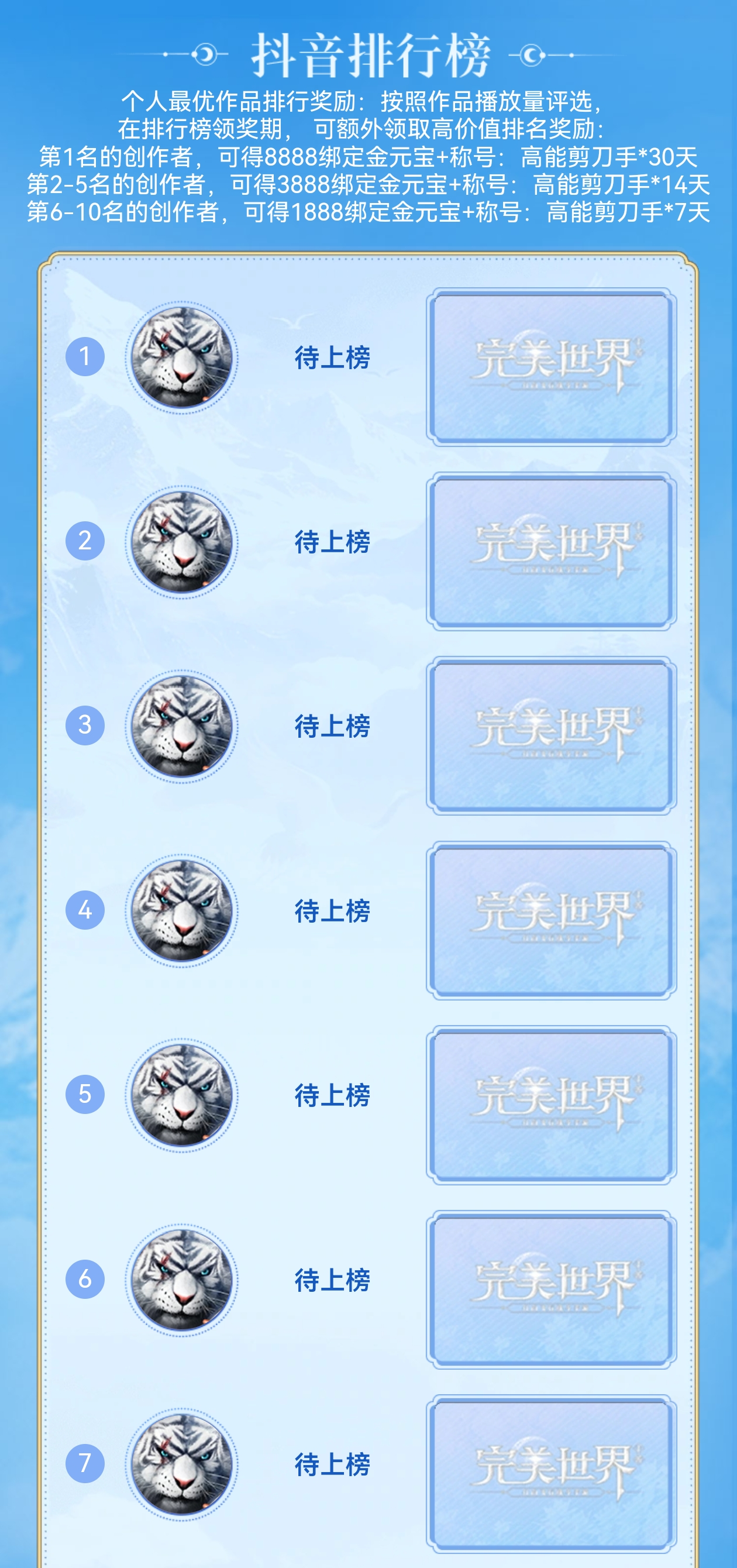 巅峰对决,谁是人气王?榜单将统计投稿作品中最高的数据(播放量、点赞、评论综合排序),角逐最终大奖!