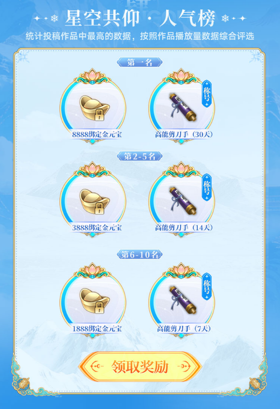第2-5名3888绑定元宝 + 【高能剪刀手】称号(14天)
