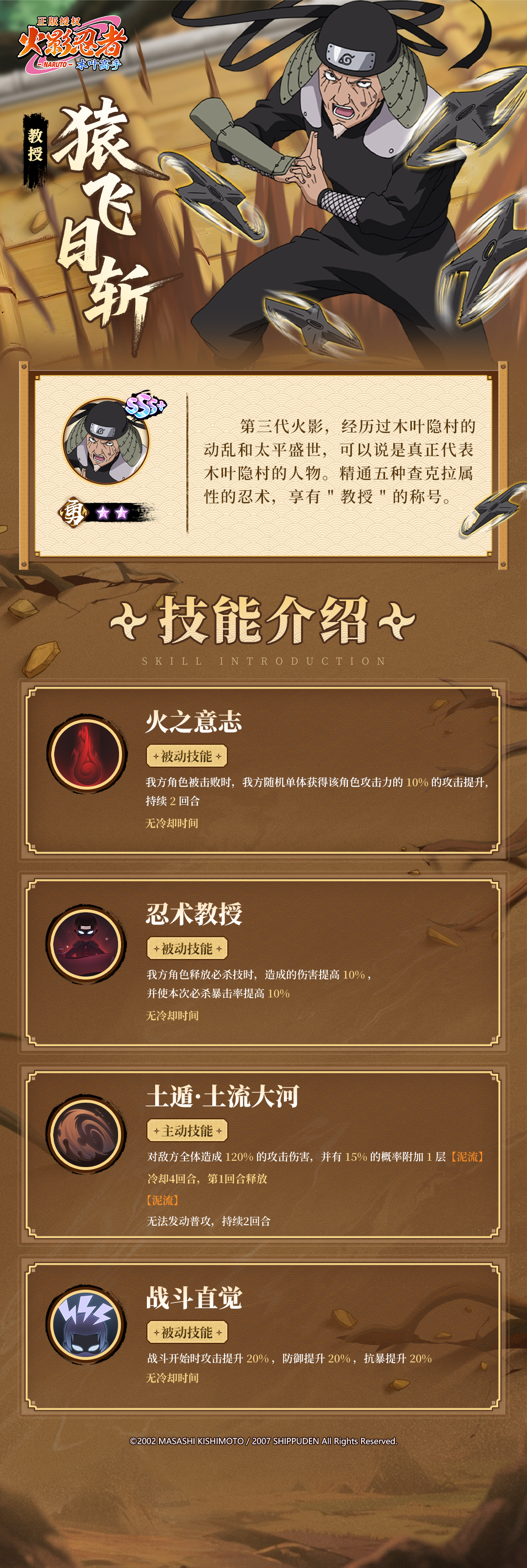 技能:忍术教授、土遁·土流大河、火之意志、战斗直觉