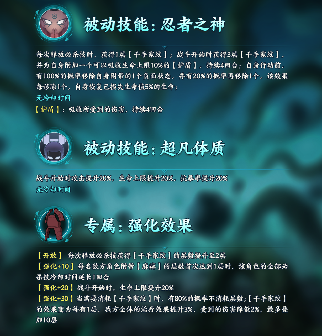 作为担任初代火影的最强忍者,他将以强大的力量,为战场带来全新的战斗体验!