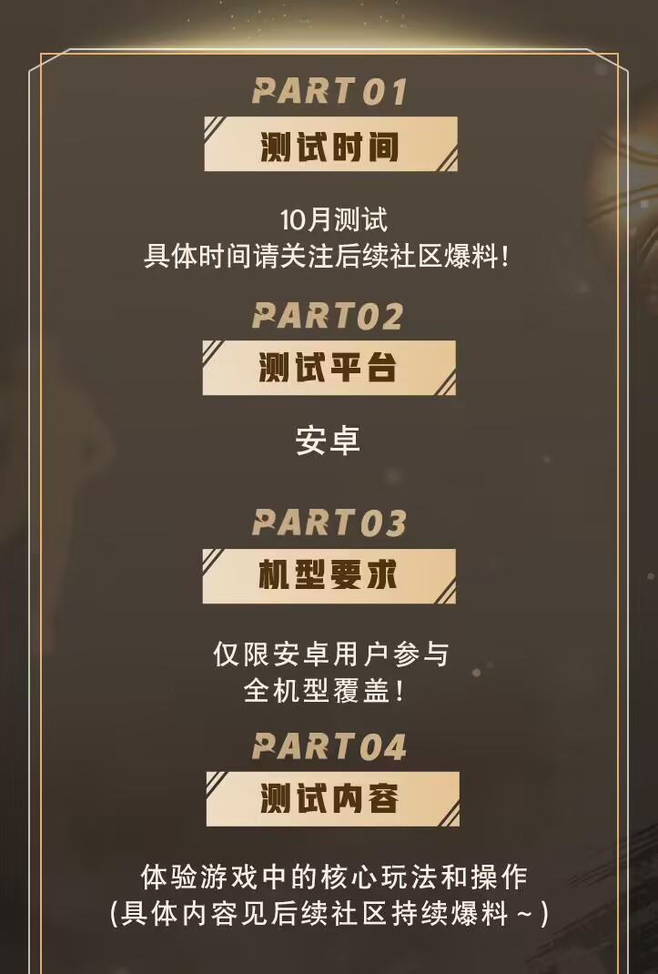 测试内容:体验游戏中的核心玩法和操作(具体内容见后续社区持续爆料~)