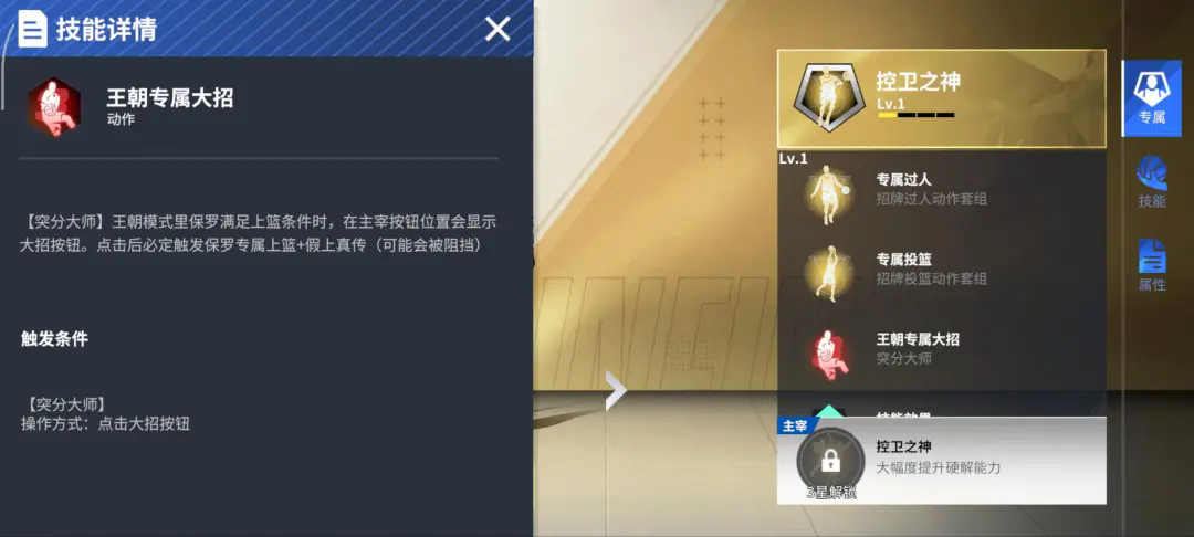 【突分大师】王朝模式里保罗满足上篮条件时,在主宰按钮位置会显示大招按钮。点击后必定触发保罗专属上篮+假上真传(可能会被阻挡)
