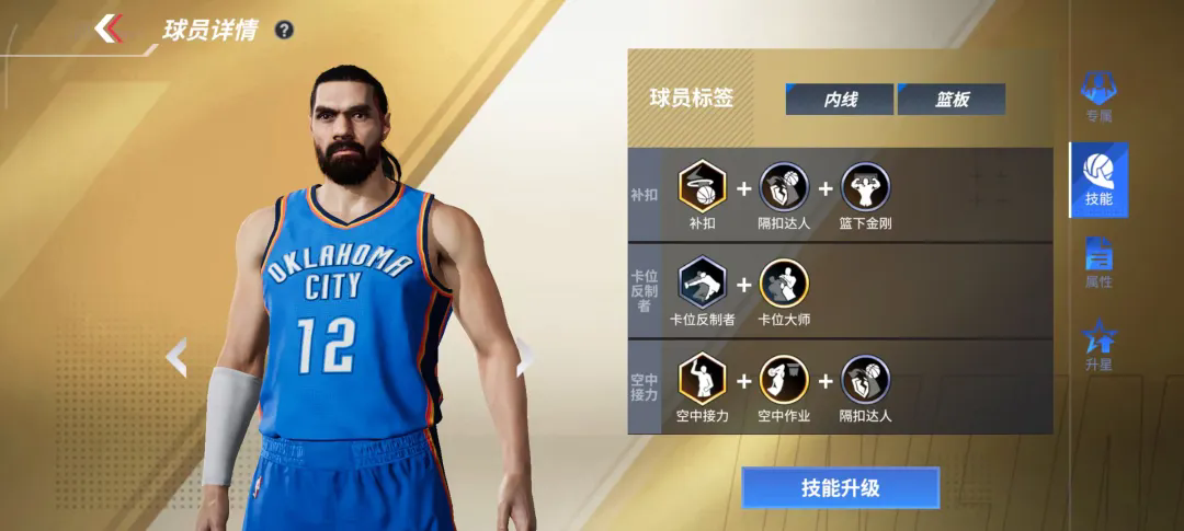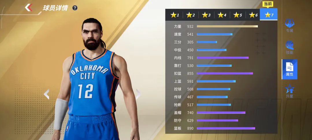全联盟卧推最顶级的男人,力量属性无可撼动!932的力量在篮下对抗其他内线轻而易举!855的扣篮和791的内线,让所有对位球员只能成为亚当斯的背景板!890篮板+740盖帽,完美的蓝领中锋数值,镇守篮下禁区唯我“海王”亚当斯!