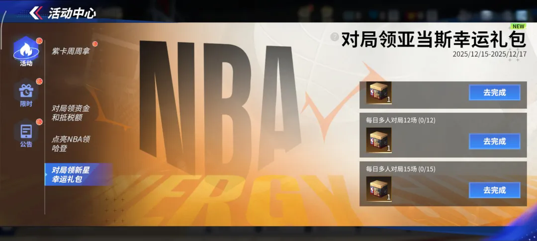 老规矩,新球星上线前吉哥给大家安排了幸运礼包!12月15日—12月17日完成对局任务,即可领取亚当斯幸运礼包,3天可以带走15个礼包,甚至有机会可以开出亚当斯本体!谁能继承海王的洪荒之力?一发入魂的机会要把握住了!