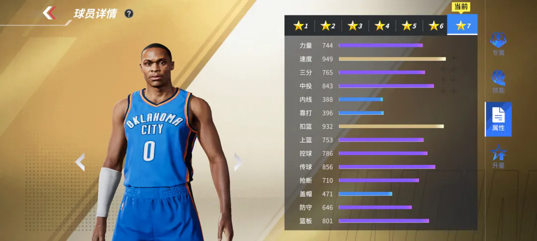 实力填满数据栏!949速度+932扣篮,持球在手,谁人能跟上我的脚步!843中投+765三分,856传球+801篮板,能投能打还能抢能传,全能,全能,还是全能!是的,此时的威少,就是无所不能!威少上场一个顶三,五打三这对面还怎么打!