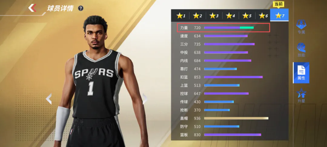 在休赛季经历了少林寺方丈的点拨后,文班亚马在本赛季的实力恐怖如斯,力量属性值从520提升至720。