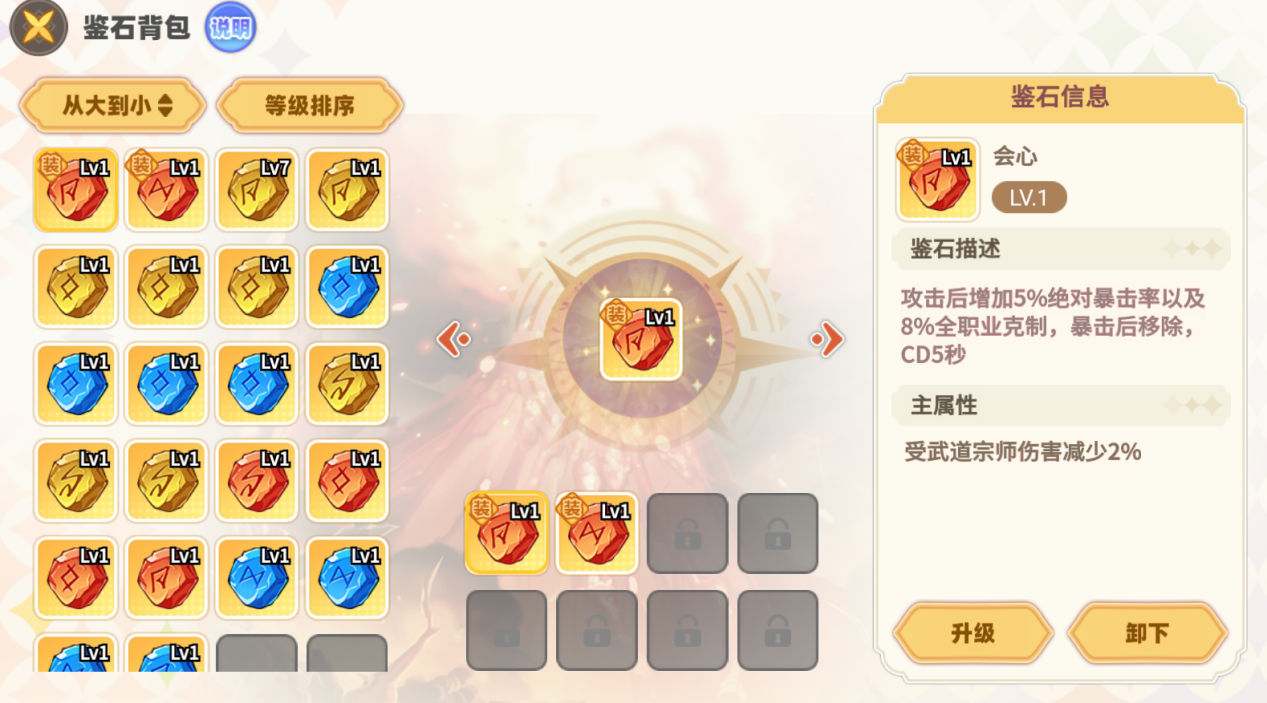 3. 鉴石副属性:鉴石在进行升级时,可以获取一条额外的副属性,现阶段鉴石可以获得6条副属性