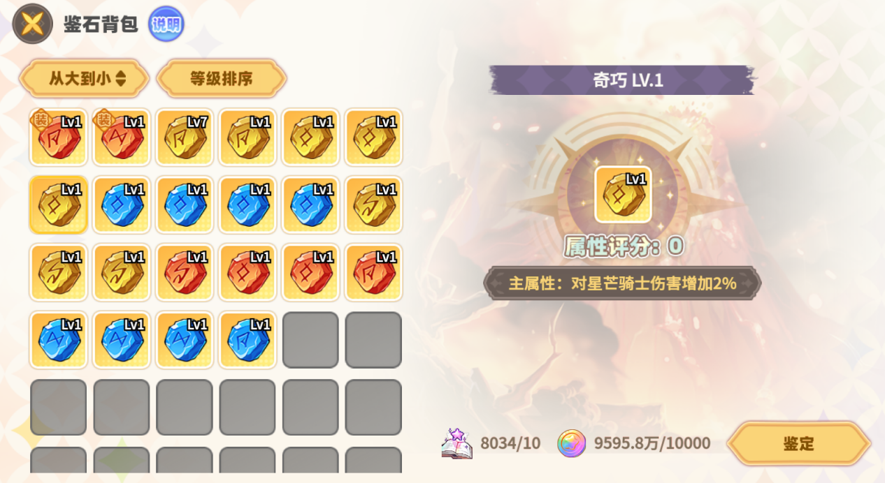 2. 鉴石主属性:获取鉴石时,鉴石会随机获得一个主属性,该属性会根据鉴石等级进行成长