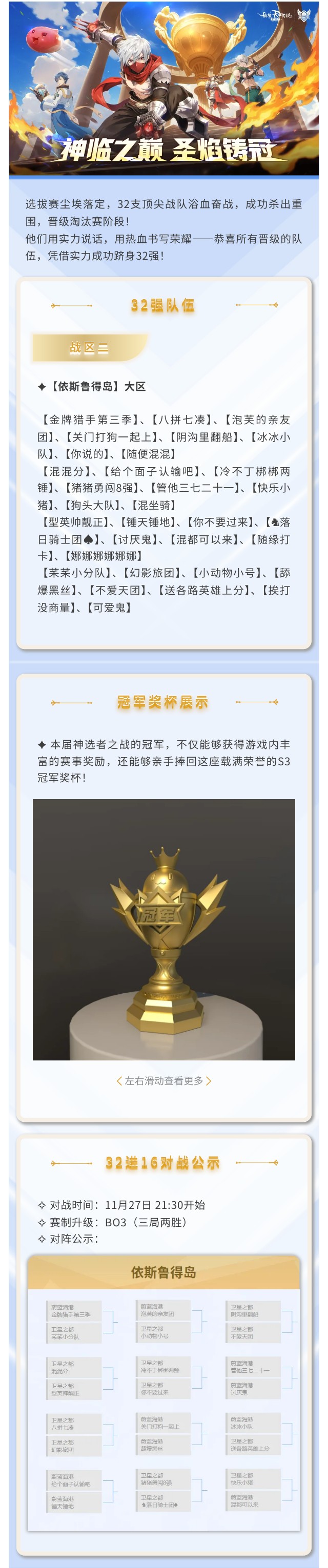 神选者之战S3:32强热血出线!冠军奖杯虚位以待!