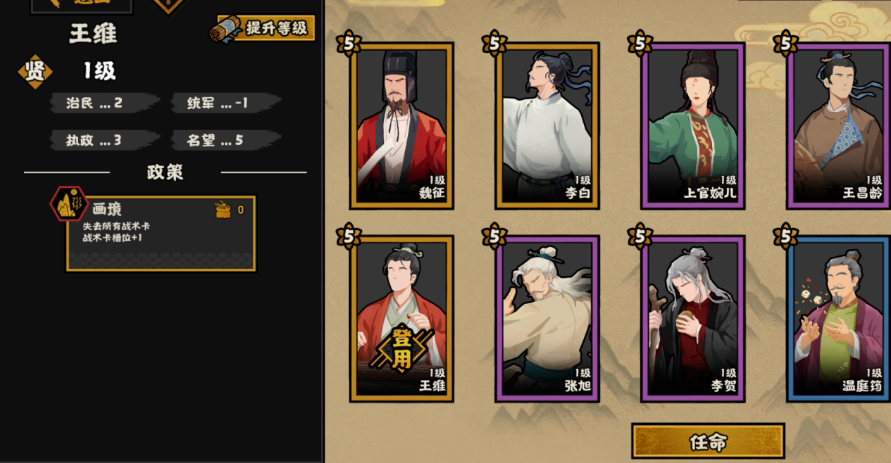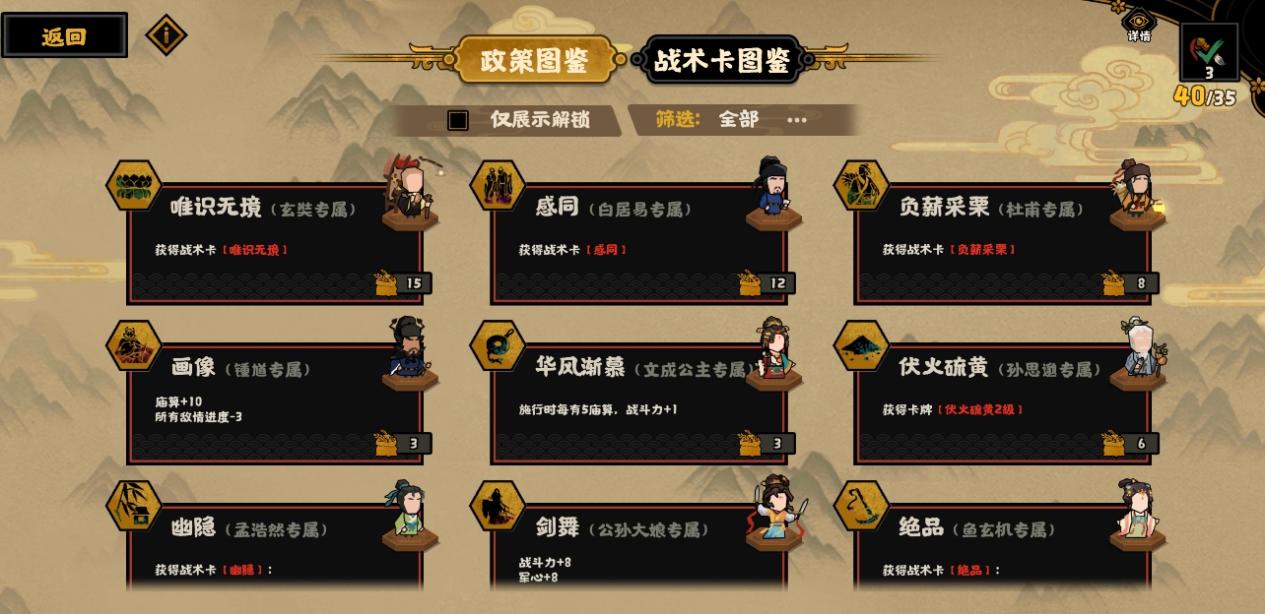 (3)通过部分的名臣政策,在局内探索和用间也有概率获取【战术卡】;