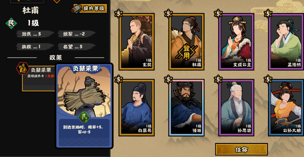*云梦碎碎念:为提升战役可玩性,我们重新设计了一批名臣的战役政策哦!由于本次战役《河西归唐》为大唐的战役,所以目前这批全新政策会率先在与此战役时代背景紧密相关的隋唐名臣中实装。王上依然可以通过熟悉的方式获取并使用它们,通关后更能解锁专属图鉴、领取进度奖励。这些都是更适配新战役玩法的设计,也是我们一次新的尝试。更多政策,期待王上亲自探索!